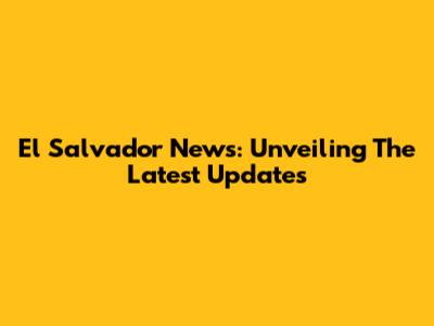El Salvador News: Unveiling The Latest Updates