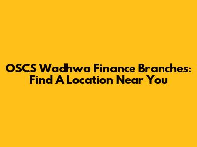 OSCS Wadhwa Finance Branches: Find A Location Near You