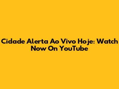Cidade Alerta Ao Vivo Hoje: Watch Now On YouTube