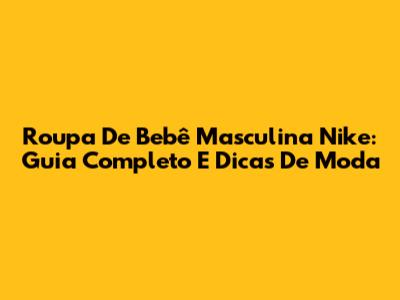 Roupa De Bebê Masculina Nike: Guia Completo E Dicas De Moda