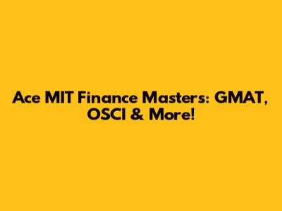 Ace MIT Finance Masters: GMAT, OSCI & More!