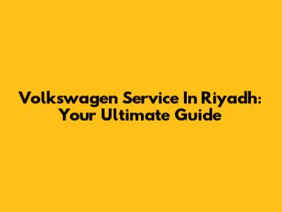 Volkswagen Service In Riyadh: Your Ultimate Guide