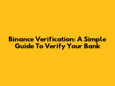 Binance Verification: A Simple Guide To Verify Your Bank