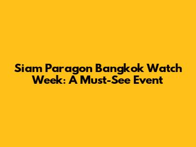 Siam Paragon Bangkok Watch Week: A Must-See Event