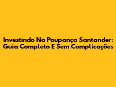 Investindo Na Poupança Santander: Guia Completo E Sem Complicações