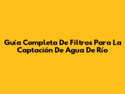 Guía Completa De Filtros Para La Captación De Agua De Río