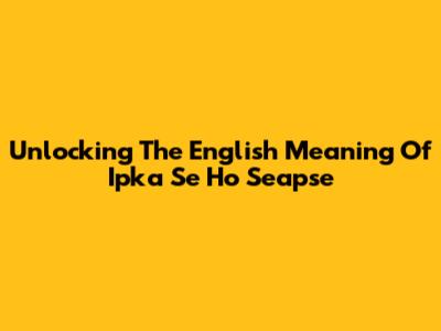Unlocking The English Meaning Of 'Ipka Se Ho Seapse'