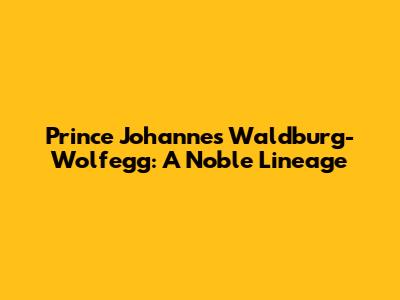 Prince Johannes Waldburg-Wolfegg: A Noble Lineage