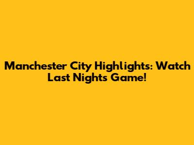 Manchester City Highlights: Watch Last Night's Game!