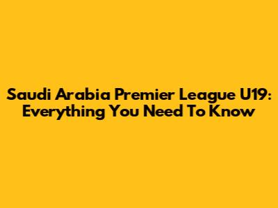 Saudi Arabia Premier League U19: Everything You Need To Know