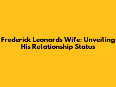 Frederick Leonard's Wife: Unveiling His Relationship Status