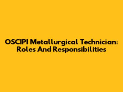 OSCIPI Metallurgical Technician: Roles And Responsibilities