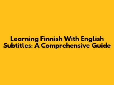 Learning Finnish With English Subtitles: A Comprehensive Guide