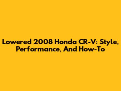 Lowered 2008 Honda CR-V: Style, Performance, And How-To